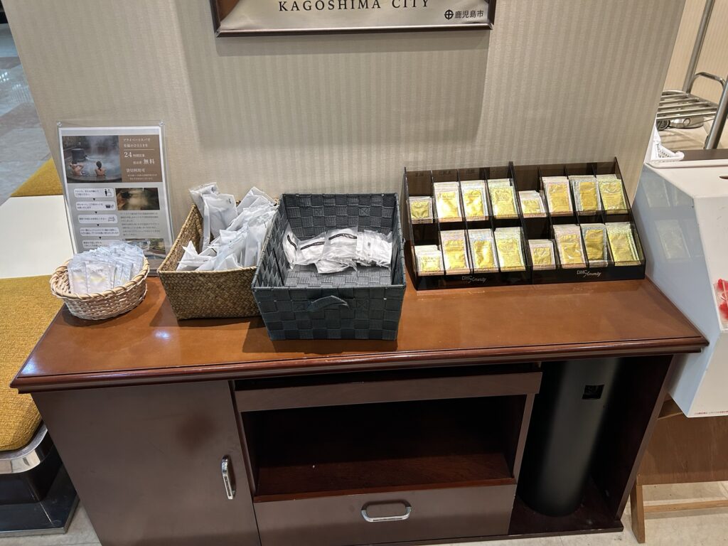 アメニティはフロントの前にあるのでセルフで必要なものを持っていくスタイルでした。