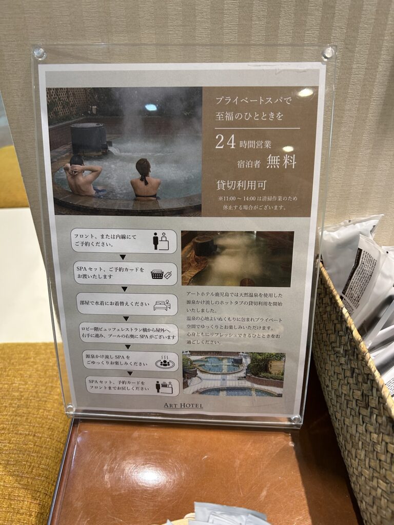 アートホテル鹿児島では貸切可能なプライベートスパが利用できます!24時間営業なのは嬉しいところですよね。