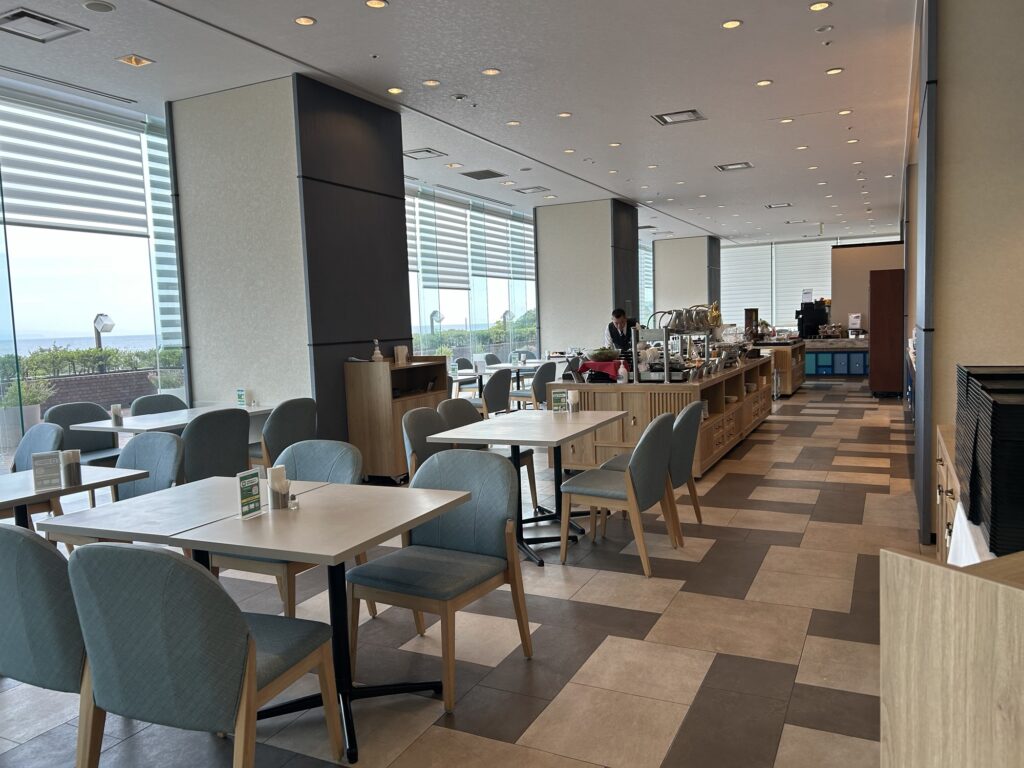 座席数も多くかなり広々!天気の良い日は窓際の席で朝食を取ればかなりリフレッシュできますね。