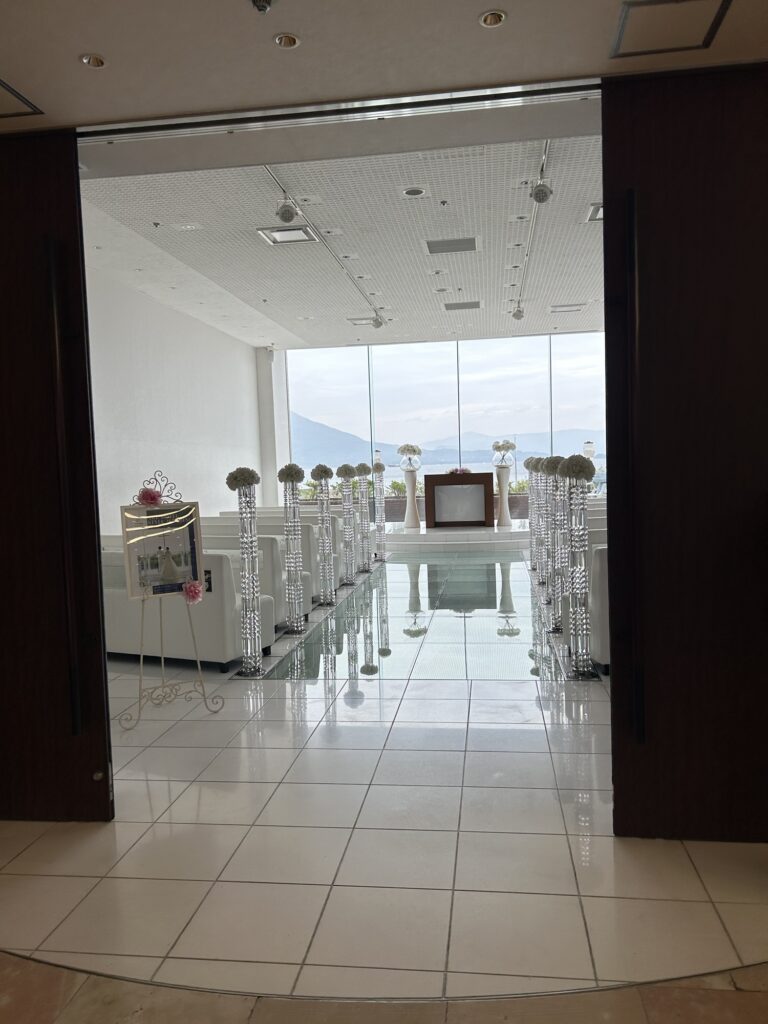 そしてこのホテルの立地ならでは!なんとこちらのホテルで結婚式をすれば桜島をバックに式ができてしまうんです!
