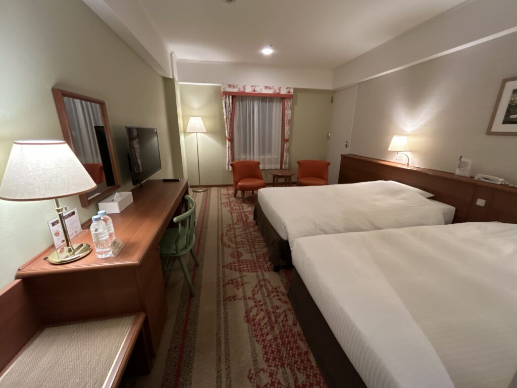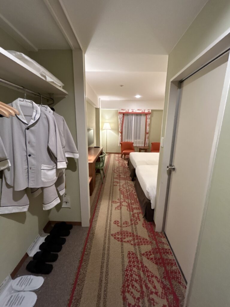 でも後になって、ハウステンボスを満喫するなら、2日目も泊まりたいねとなったのですが、動き出すのがギリギリだったので2日目のパークサイドツインは既に空きがなく山側スタンダードツインに宿泊することに。