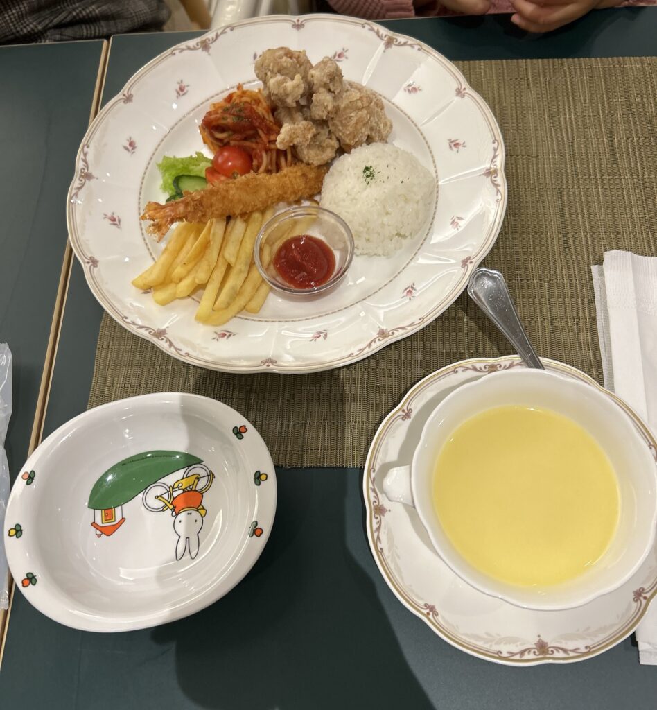 コーンスープ、オレンジジュースにおこさまプレート。