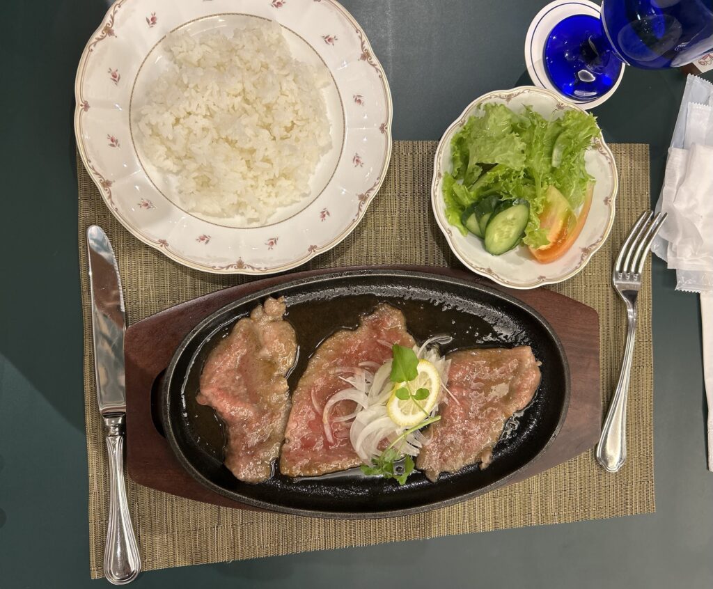 このレモンステーキ、客である私たちが提供された鉄板で表面を焼き上げて食べるので、しっかり熱々を楽しめますし、焼き加減も自分で調整できます。レモンの風味の香りが食欲をそそります。ソースもたっぷりなので、お肉を食べ終わってしまった後もライスを鉄板に入れてソースと絡めて食べるのがおすすめだそうです。ほんとにとってもおいしくて、なかなかの値段がしましたが大満足でした。
