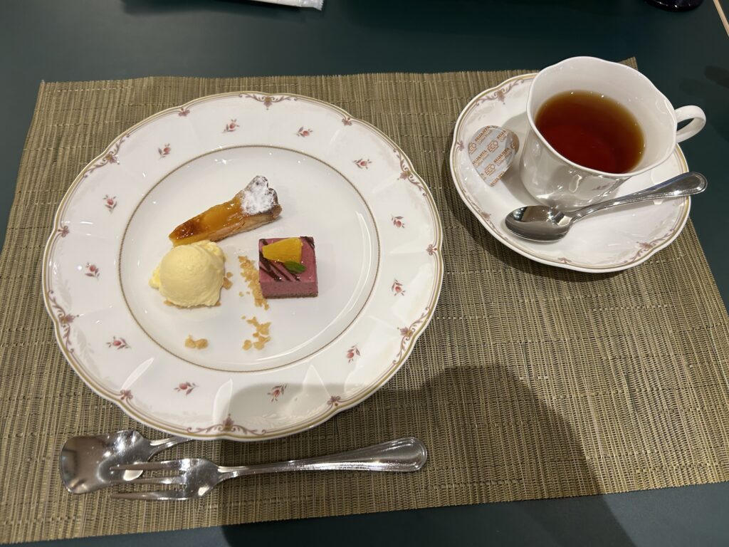 食後にはデザートの盛り合わせと紅茶またはコーヒーが出てきます。