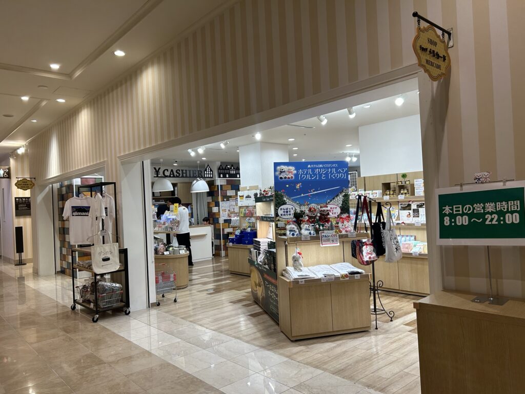 まずは1階フロントすぐ近くにある大きな売店。朝早くから遅くまで営業しているため、ハウステンボスに行く前や閉園後も寄れますよ。