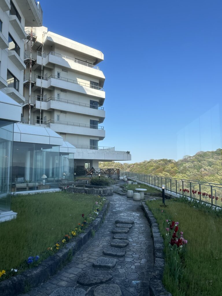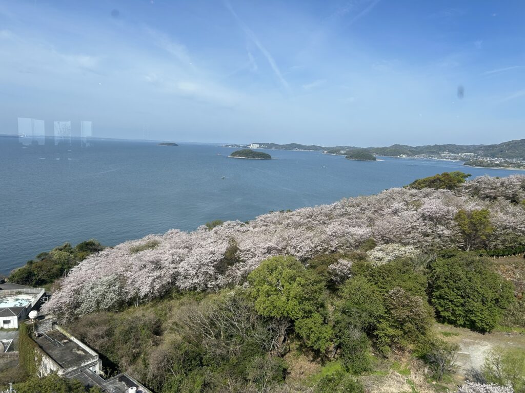 今回私たちは春の時期に訪れたのでこちらのラウンジから見下ろす桜と海がもう絶景でした。