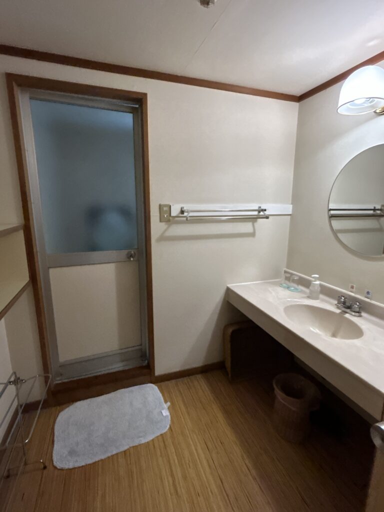 お風呂は少し古めですね。シャンプーなどの備品はついていないのでご注意を!