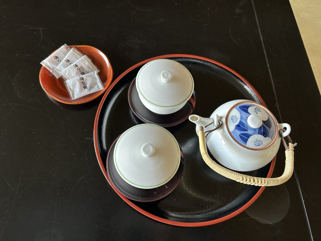 お部屋の備品ですが、お茶と種無し梅のお菓子がついてました。