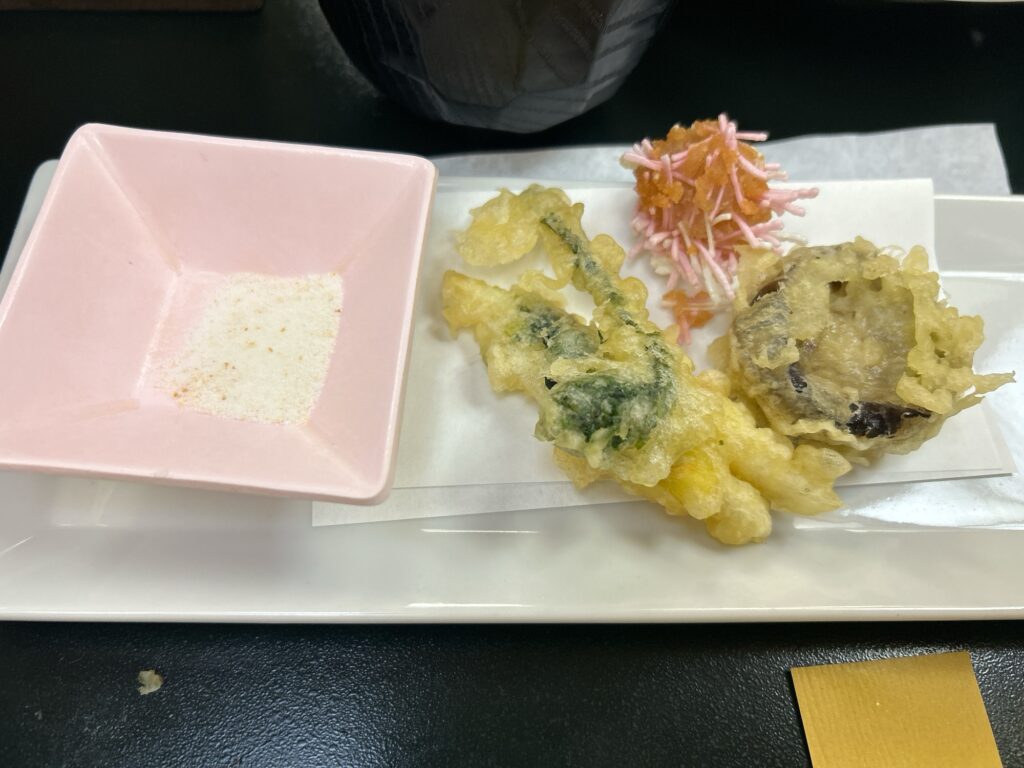 あとから天ぷらも。特にナスの挟み揚げがかなりおいしかったです。どれも熱々なのが嬉しい。