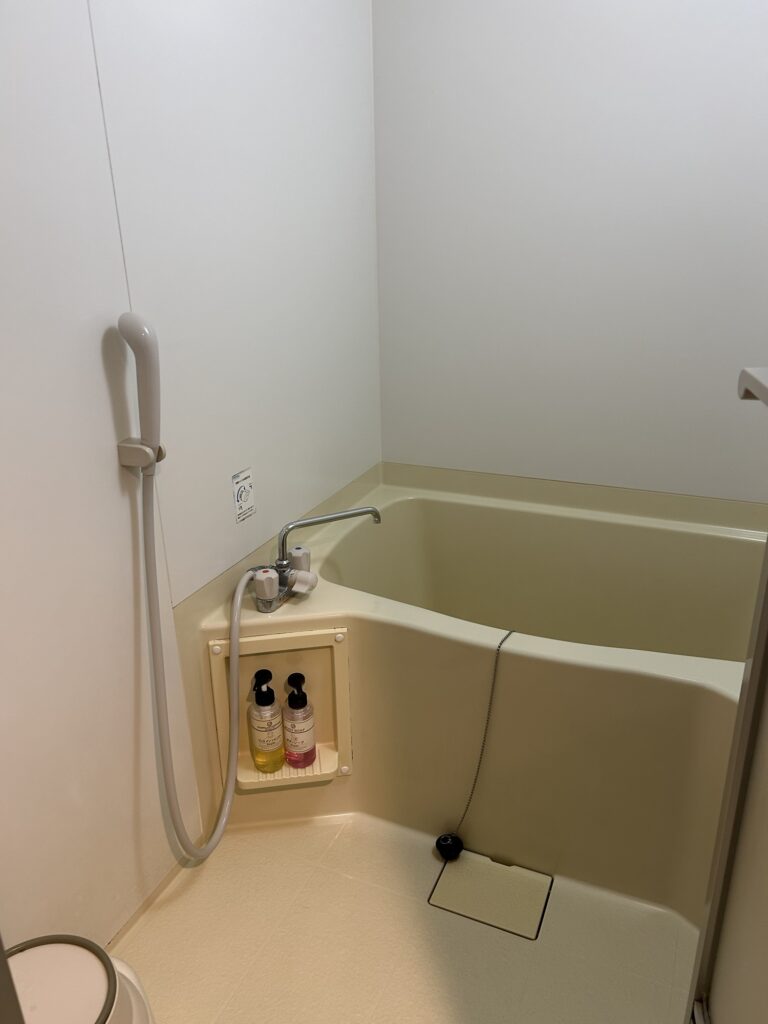 お部屋に付属のお風呂もきれいで広く、ボディーソープとリンスインシャンプーがありました!