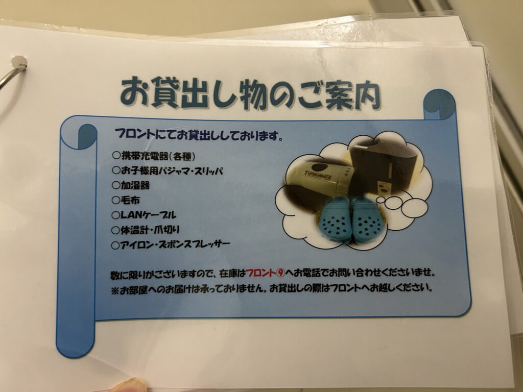 更にフロントにお願いすれば携帯充電器や加湿器など色々と貸してくれます!