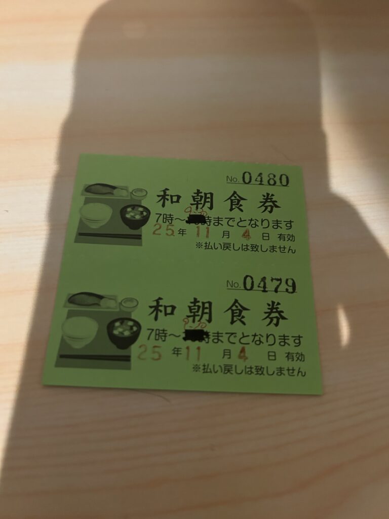 予約するともらえる朝食券も、朝持って行くのを忘れずに!