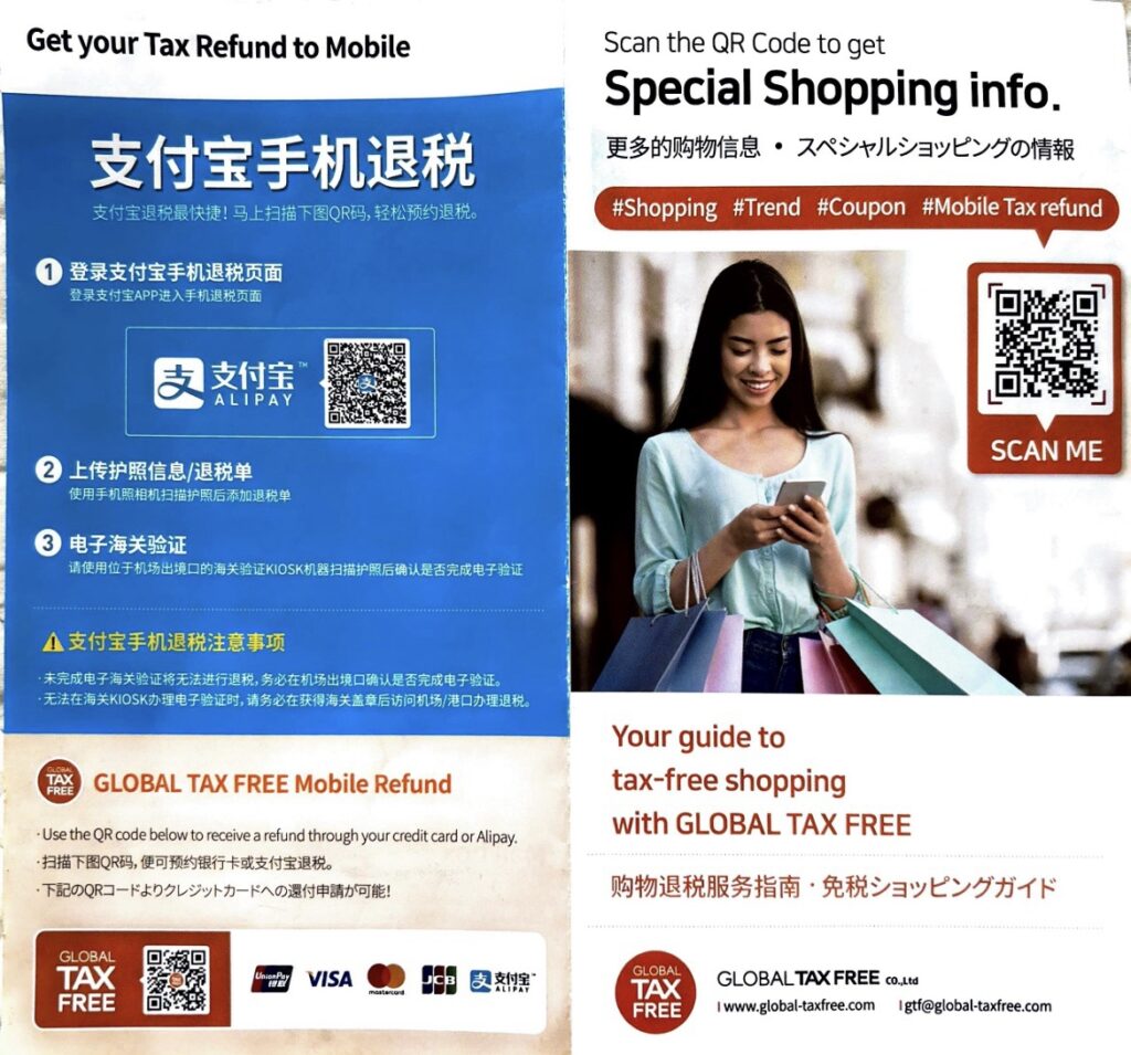 一応免税品購入時に、空港で事後免税処理(タックスリファンド)の流れが記載された案内書類ももらえました。