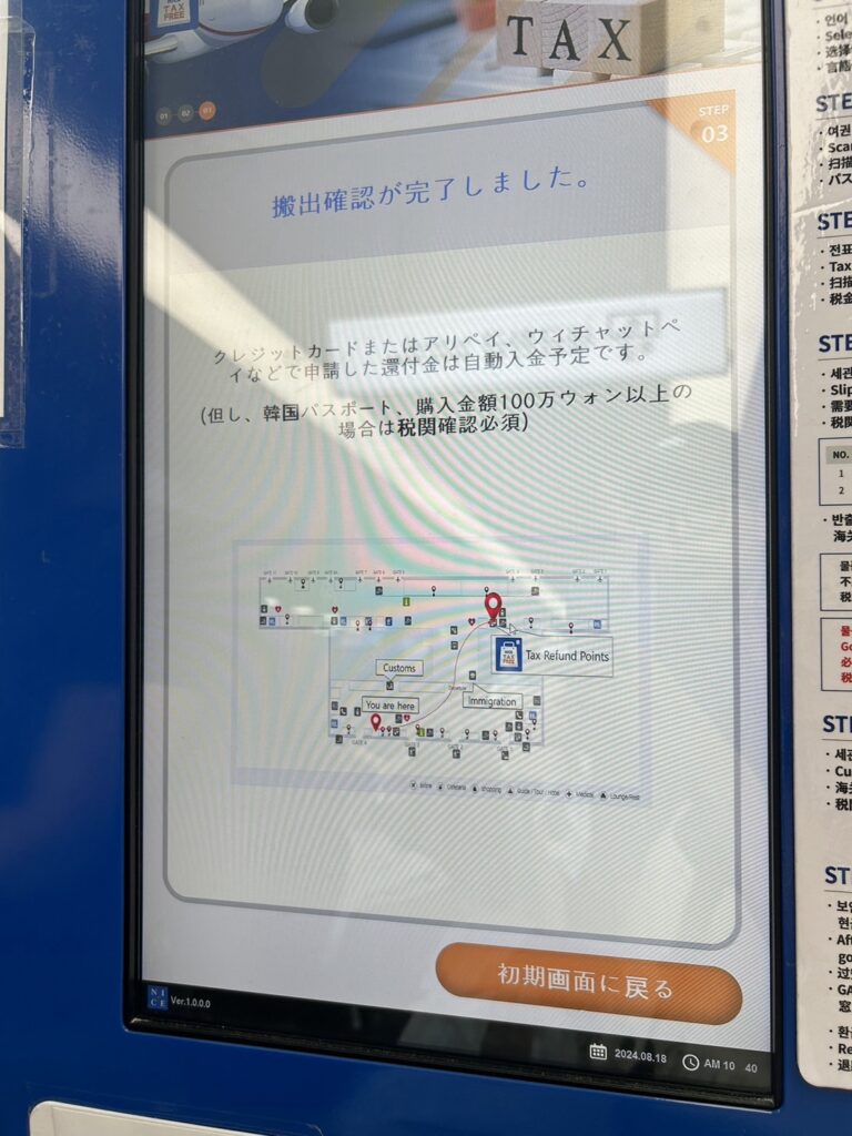 免税品の購入ができれば、あとは韓国出国前に空港で免税金返金の処理をします。