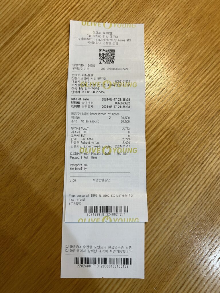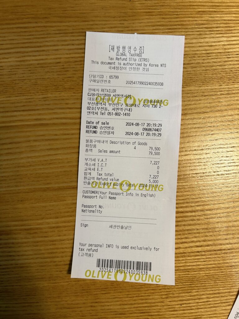 また今回自分はオリーブヤングで購入しましたが、ロッテ免税店など、免税品購入可能な店舗であれば同様に対応してくれます。