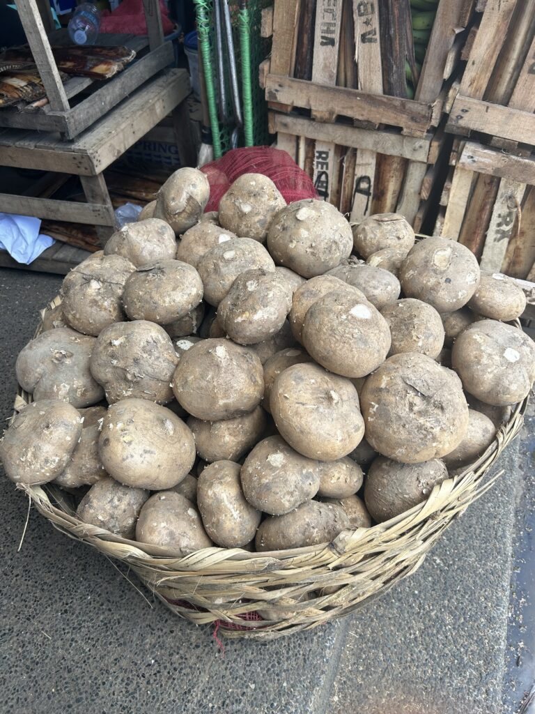 こちらもスケールにて計算。この大きさ、丸ごと一つで187ペソ。4-500円程度ですね。こちらもお値打ち!丸ごと売ってくれたのですが、皮が硬くて家だと皮を剥けないと伝えるとその場でナイフ(というより包丁?)でガッガッとダイナミックに切れ目を入れてくれました。