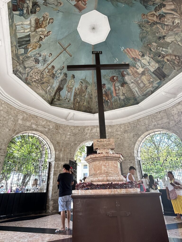 マゼランクロスはマゼランが建てた木製の十字架です。全壊を防ぐため八角堂の建物の中に置かれています。