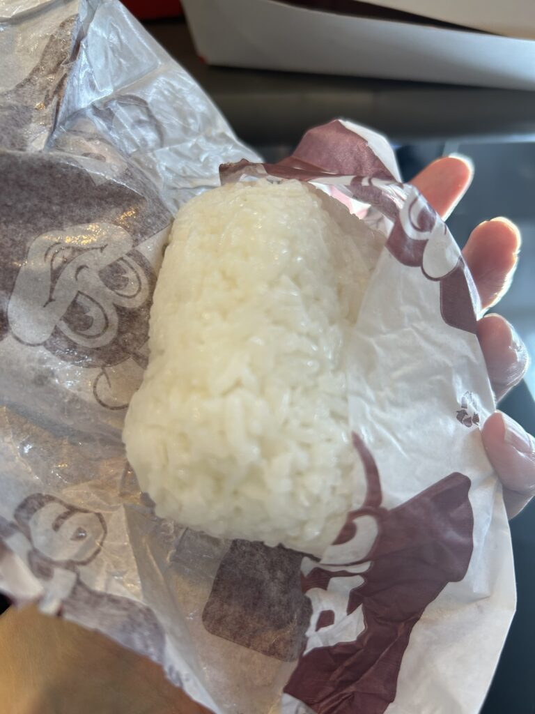 そしてチキンを頼むとご飯が必ずついてきます。ハンバーガー頼むしご飯はいらないやと思っていたのですが、どのように組み合わせをしても必ずついてくるご飯!!