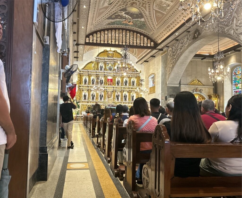 教会の中は人がたくさん。奥の方にサントニーニョの像も見えます。