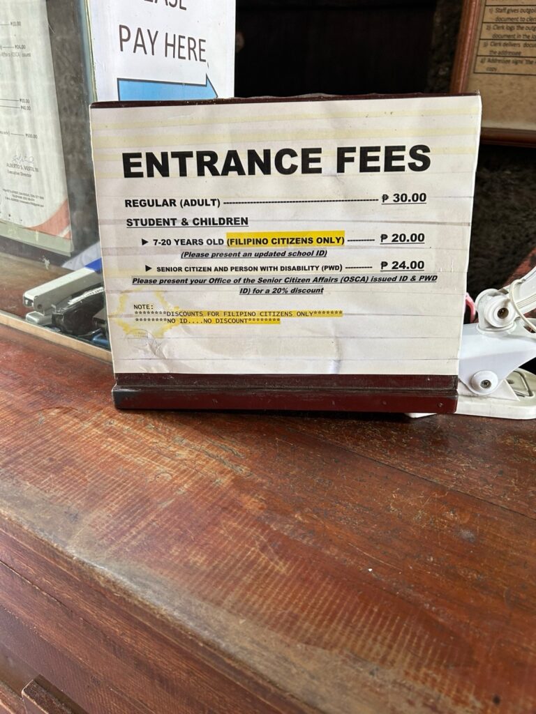 一般の人は30ペソ。生徒や子供は20ペソです。現金オンリーなので気をつけてくださいね。