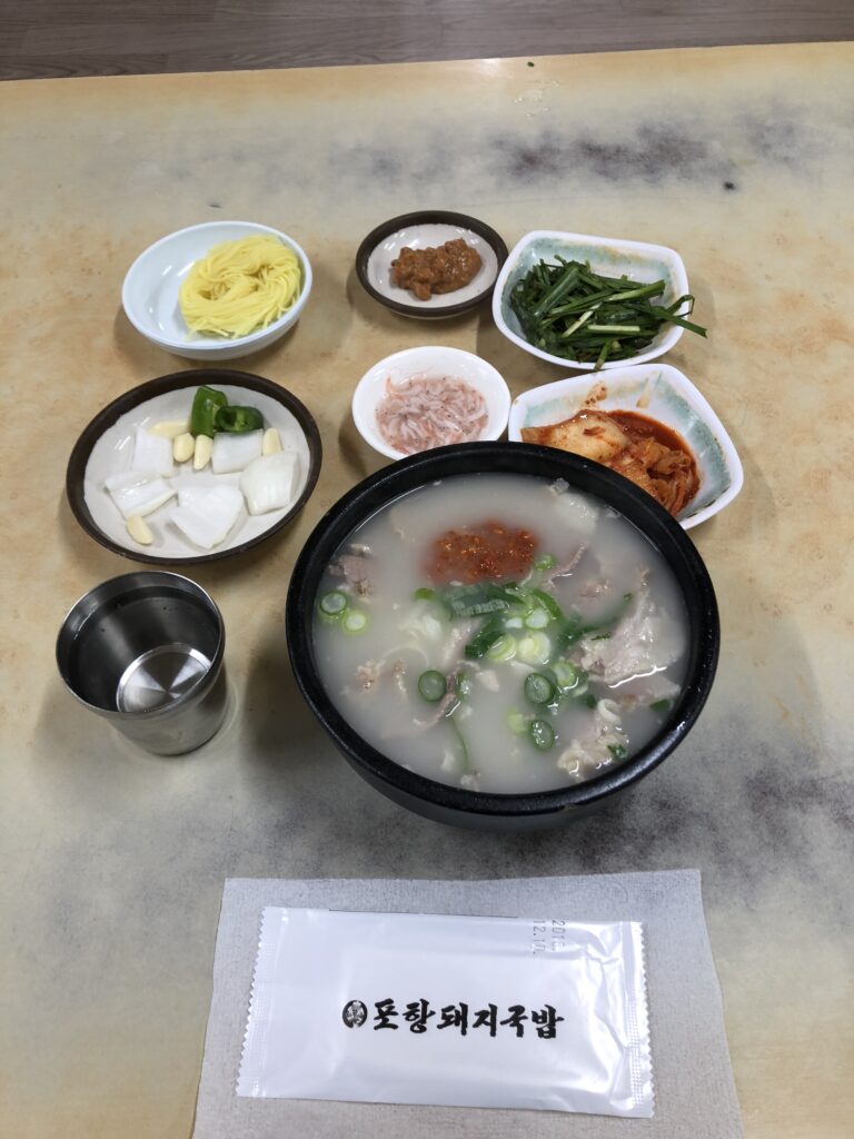 スープはしっかり豚肉の味が染み込んでて、優しい味。韓国の辛いもの尽くしで胃腸が疲れている人にもオススメです。