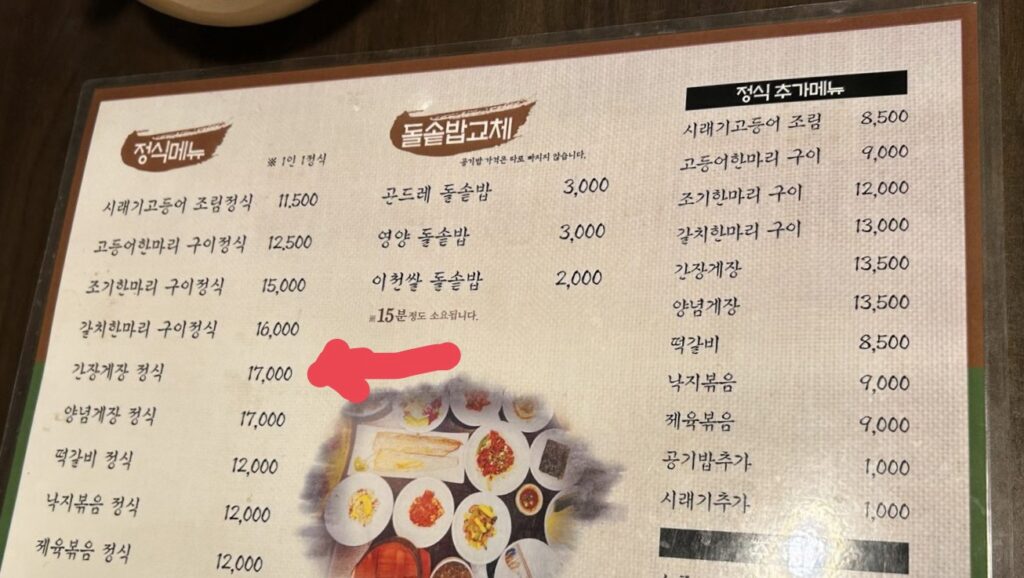 私たちはどうしてもカンジャンケジャンが食べたかったので、カンジャンケジャン定食を2つ頼んでしまいました・・
