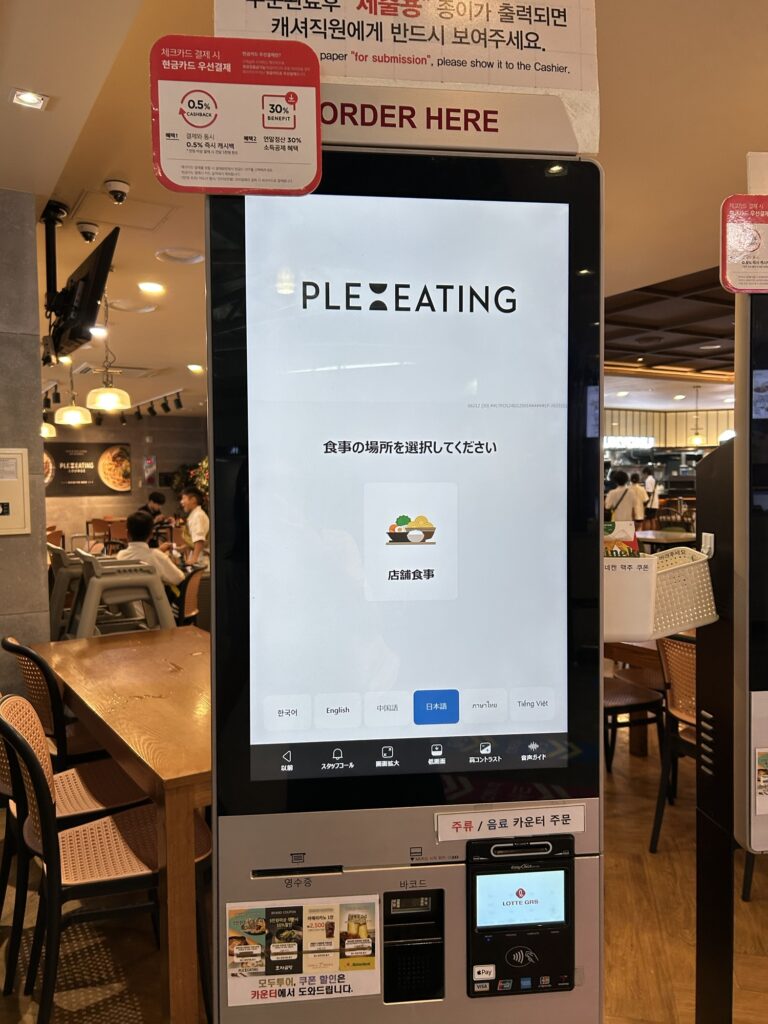 三階のお店はどこも入口のタッチパネルで注文できます。(日本語対応!)
